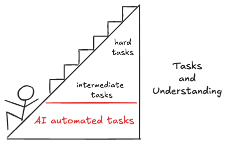 For organisations, the allure is obvious: efficiency gains, cost savings, and the ability for existing staff to focus on higher-value activities. However, this automation creates a perilous "AI Slide" in the staircase of competence. By removing the need for novices to perform these foundational tasks, we inadvertently remove the natural environment for essential, hands-on practice.